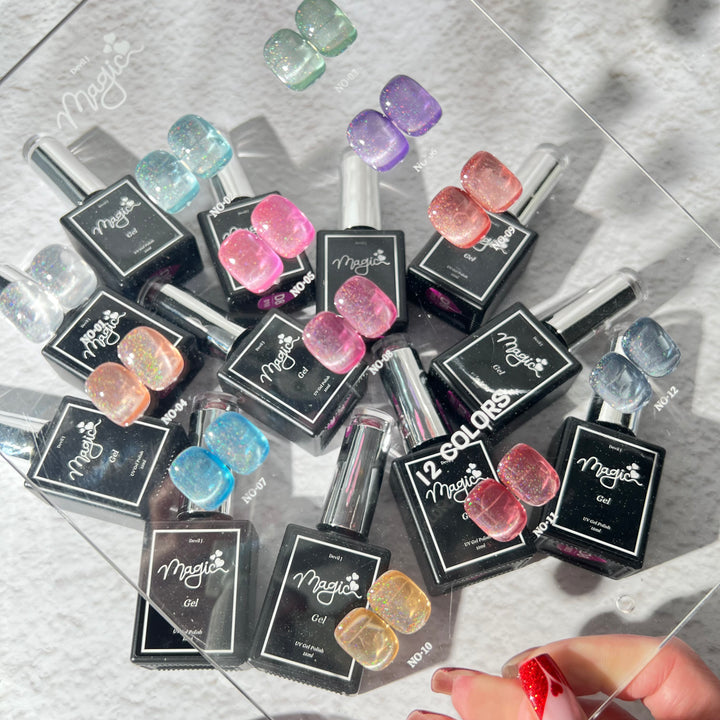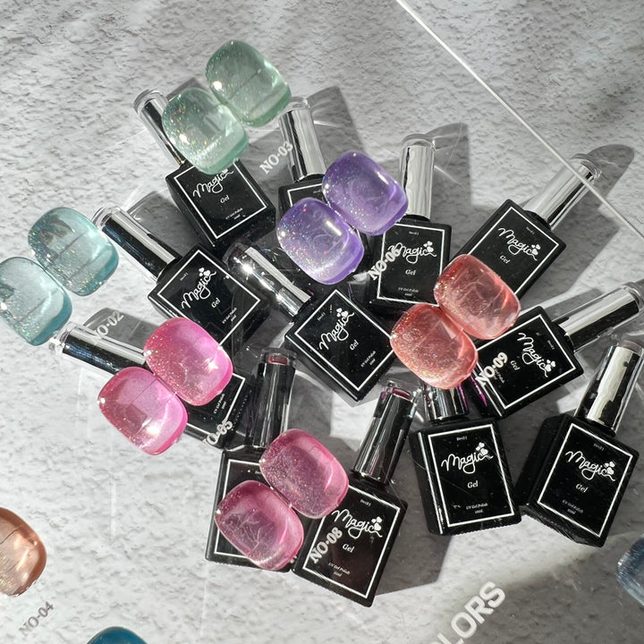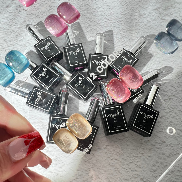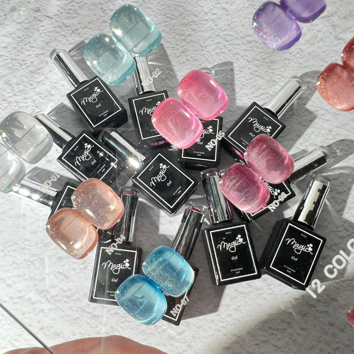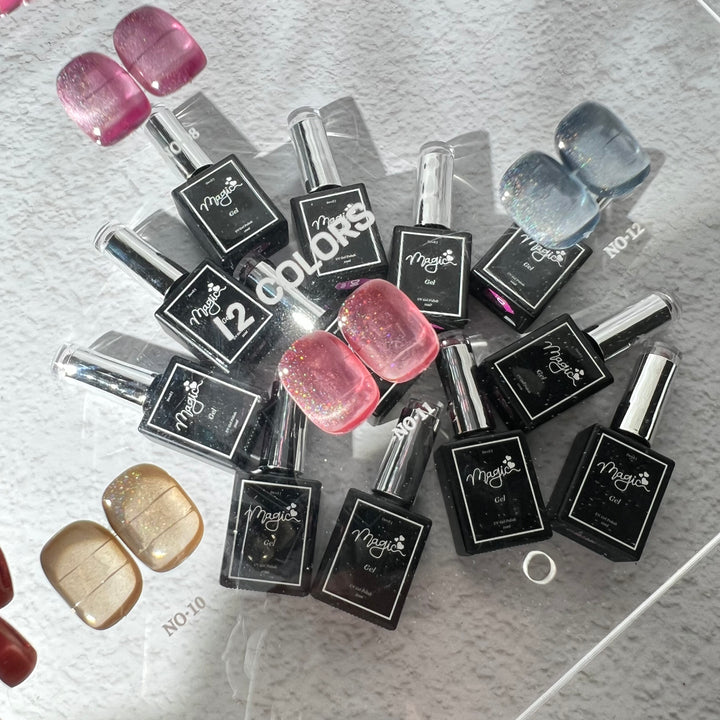 This versatile polish offers 12 stunning, Hema-free colors. With a quick drying time under a LED / UV nail lamp and easy removal in just 10 minutes, it is suitable for natural nails, acrylics, and Nail Tips. Achieve a highly pigmented finish with one to two applications. For optimal and long-lasting results, pair with Magic Base and Magic Top Coat. This 15ml bottle will last you through many manicures and needed to be use with Cat Eye Gel Nail Magnet to acheive the Cat Eyes design.