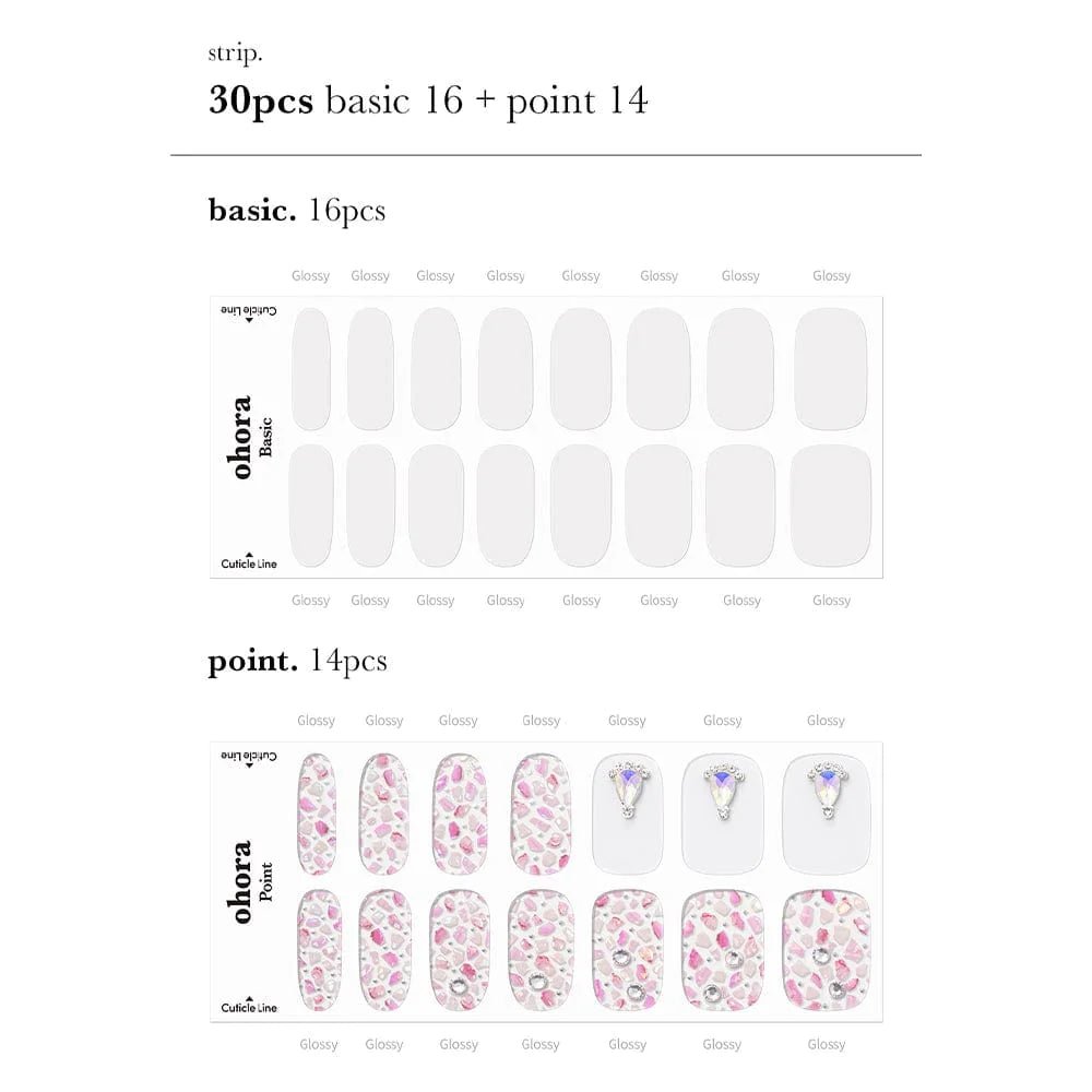 30 Nail strips (16 basics & 14 accents) in 15 different sizes