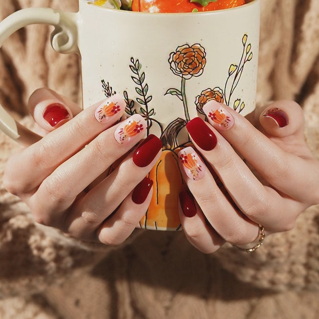 Celebrate the beauty of fall with N Autumn Harvest. This charming set combines rich cranberry red with blush-toned pumpkin and floral accents, sprinkled with warm autumn hues and a touch of gold. It’s the perfect seasonal mani — cozy, stylish, and full of harvest charm.