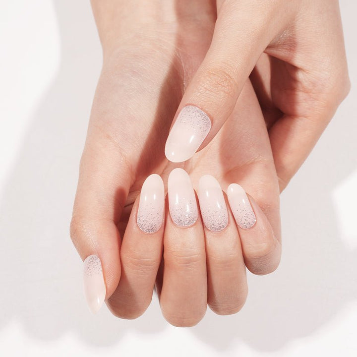 N Glitter Tender wraps your nails in a soft blush ombre and delicate silver glitter — just like a bridal veil shimmering in the light. Perfect for weddings, bridal showers, or any day you want to feel beautifully romantic.