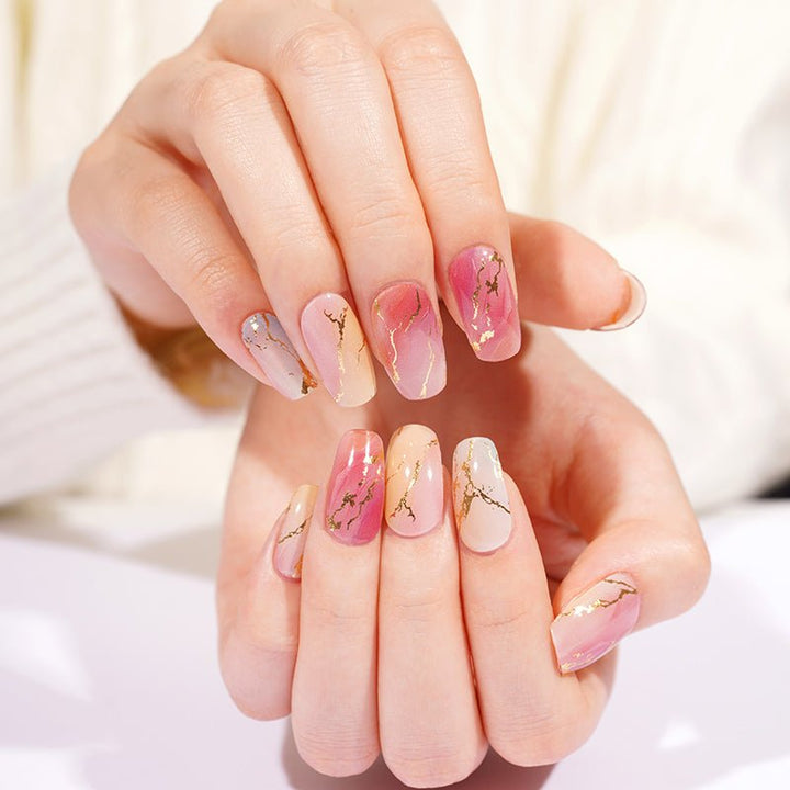 Semi-cured gel nail stickers are real gel nail polish that are partially cured. Because they are not fully cured, they are flexible and stretchy, making them a perfect fit for all nail sizes with no wrinkles upon application. Once applied, they are cured under a UV light. The result is shiny, hard, perfectly curved nails just like liquid gel nail polish. Get salon quality gel nails without leaving the house. Removal is just as simple – no soaking or harsh chemicals needed.  Â