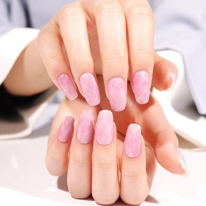 Semi-cured gel nail stickers are real gel nail polish that are partially cured. Because they are not fully cured, they are flexible and stretchy, making them a perfect fit for all nail sizes with no wrinkles upon application. Once applied, they are cured under a UV light. The result is shiny, hard, perfectly curved nails just like liquid gel nail polish. Get salon quality gel nails without leaving the house. Removal is just as simple – no soaking or harsh chemicals needed.  Â