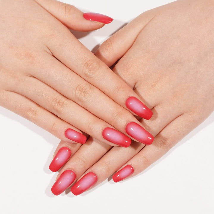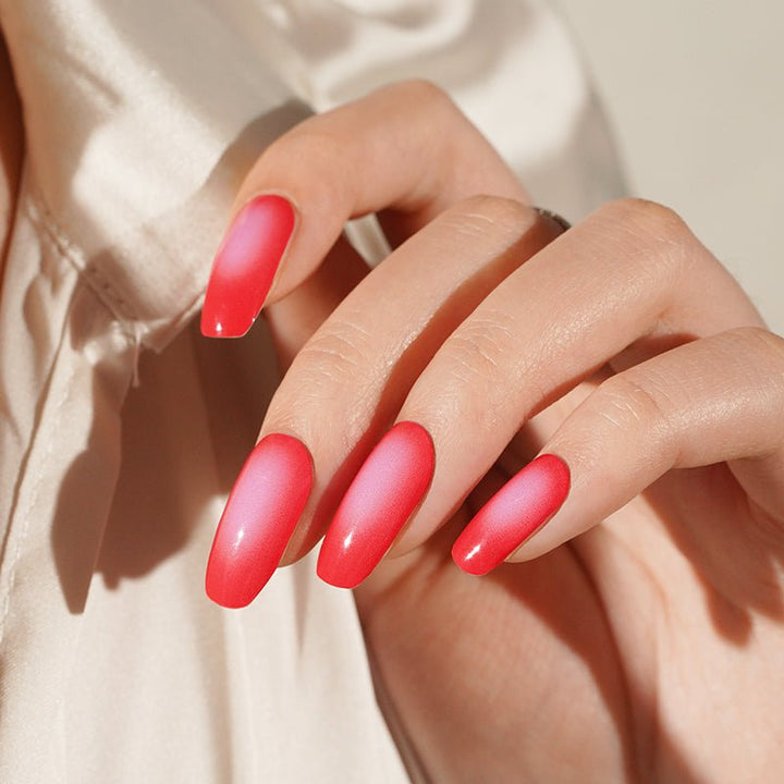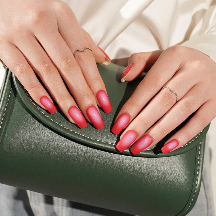 Turn up the heat with this fierce pink-to-red ombre. Bold, confident, and ready to slay — these nails make every gesture unforgettable.