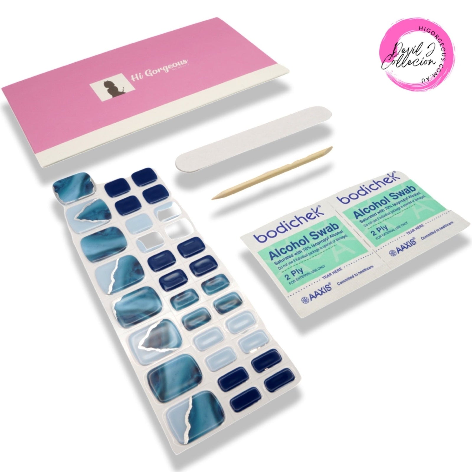 Semi-cured gel nail stickers are real gel nail polish that are partially cured. Because they are not fully cured, they are flexible and stretchy, making them a perfect fit for all nail sizes with no wrinkles upon application. Once applied, they are cured under a UV light. The result is shiny, hard, perfectly curved nails just like liquid gel nail polish. Get salon quality gel nails without leaving the house. Removal is just as simple – no soaking or harsh chemicals needed.