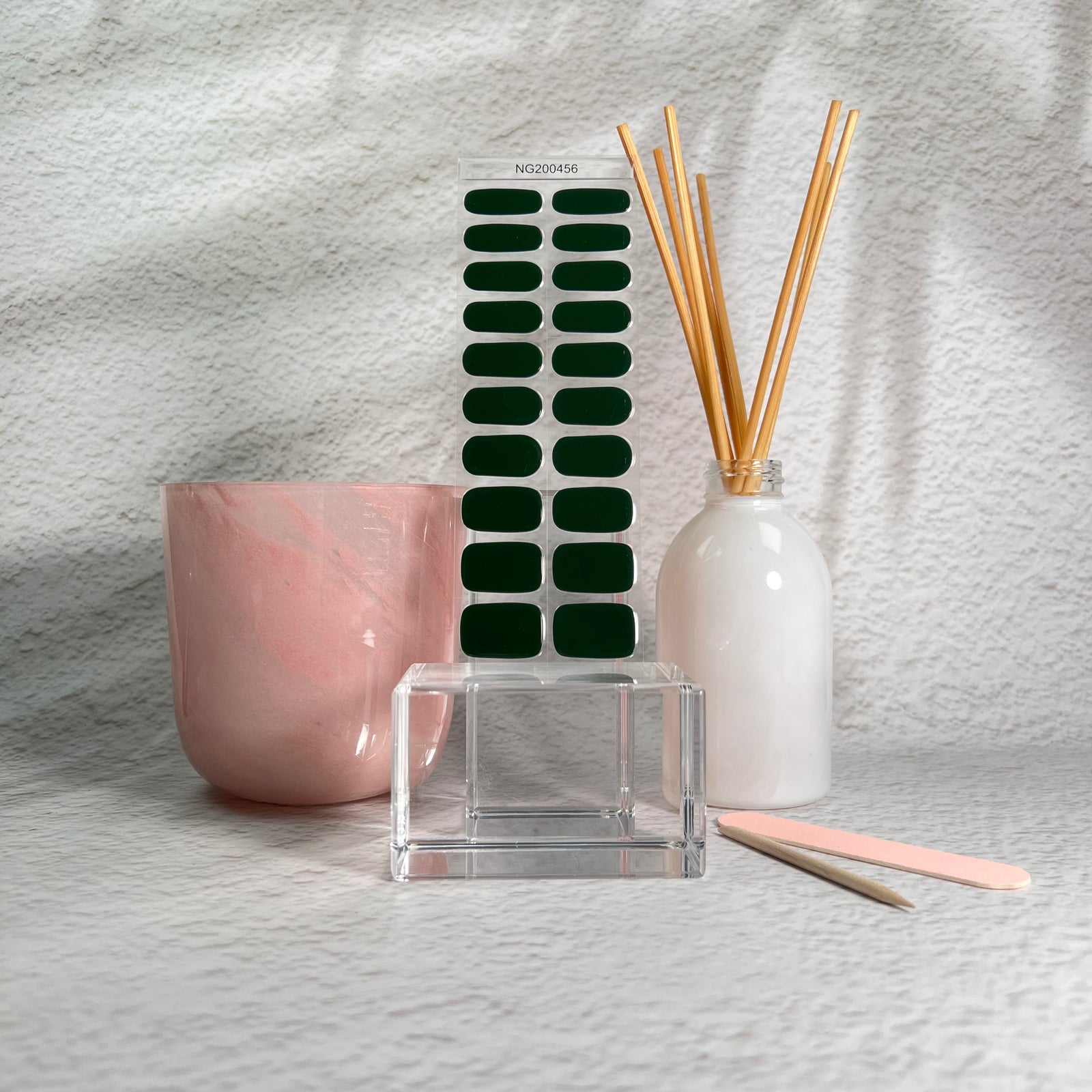 - Prep nails – push cuticle back, buff nails to clean, wipe nails with included cleanser pad to remove any oil.